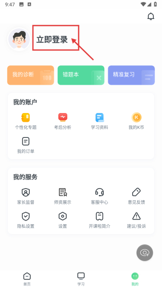 2、在个人中心,点击立即登录选项,进入登录页面。
