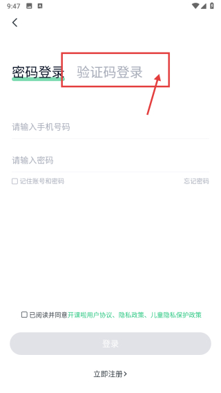 3、进入登录页面后,选择验证码登录的方式,即可进入验证码登录信息的填写页面。