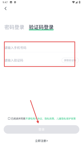 4、在验证码登录的信息填写页面,输入手机号码后点击登录按钮,即可完成登录操作。
