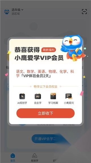 3、进入平台后,新用户能看到平台免费赠送的各学科三天VIP权益。