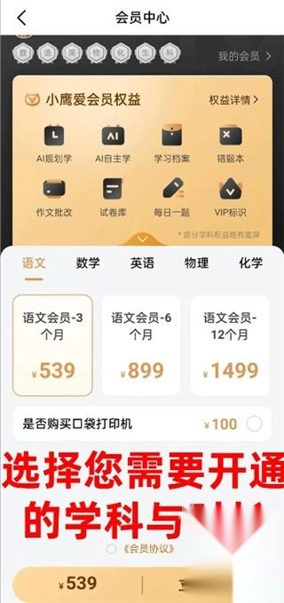 5、进入后选择想要开通的学科与时长,此时就能看到开通VIP所需的费用了。