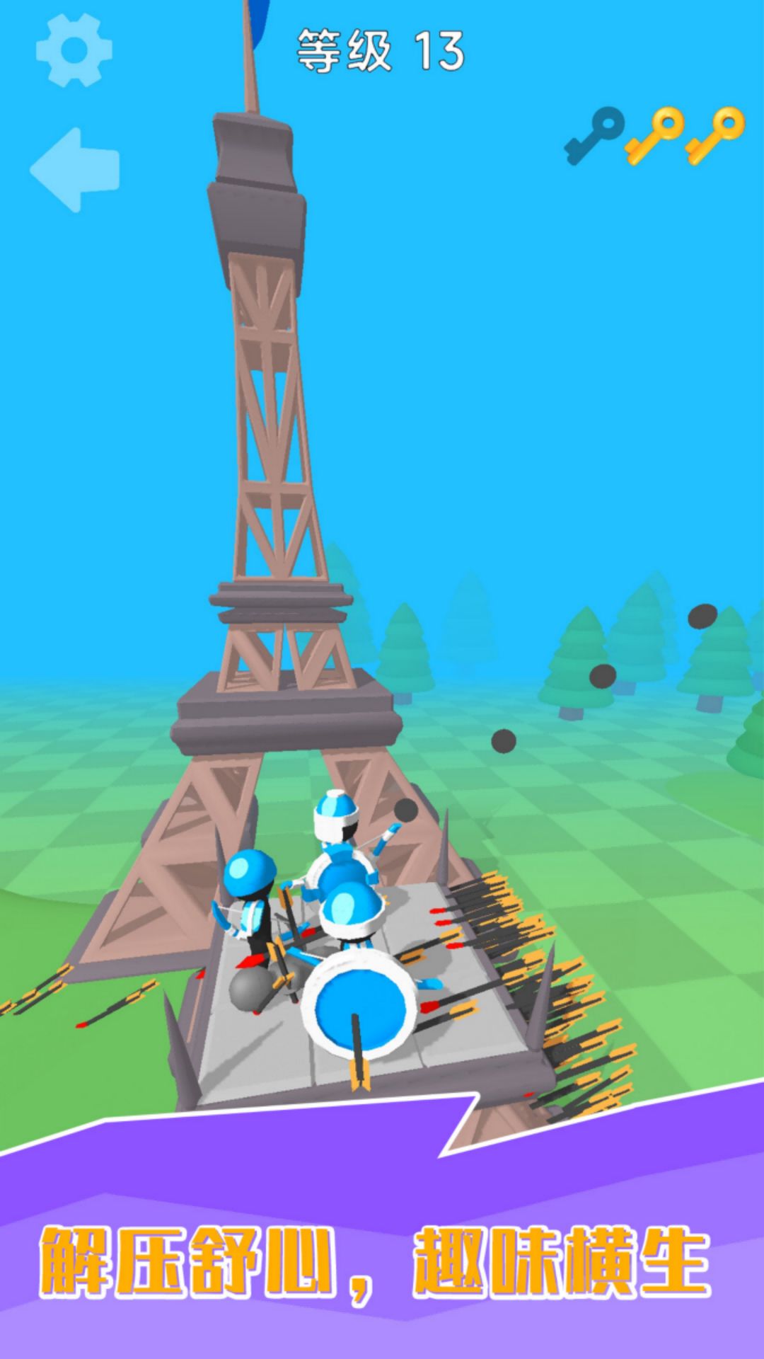 在这款以弓箭为核心的策略射击游戏中,玩家需要守护自己的城堡,抵御源源不断的敌人进攻。通过精准操控弓箭瞄准并射击来击退敌军,同时还能通过升级武器、招募盟友、布置防御设施等手段强化防线。游戏包含多样的关卡设计与挑战模式,玩家可根据自身水平选择不同难度,在实战中提升射击精度与策略规划能力,最终凭借出色的弓箭技艺守护城堡的安全。