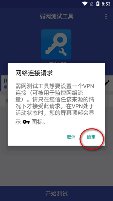 1、先在本站最新版本的弱网测试工具安装到手机上。