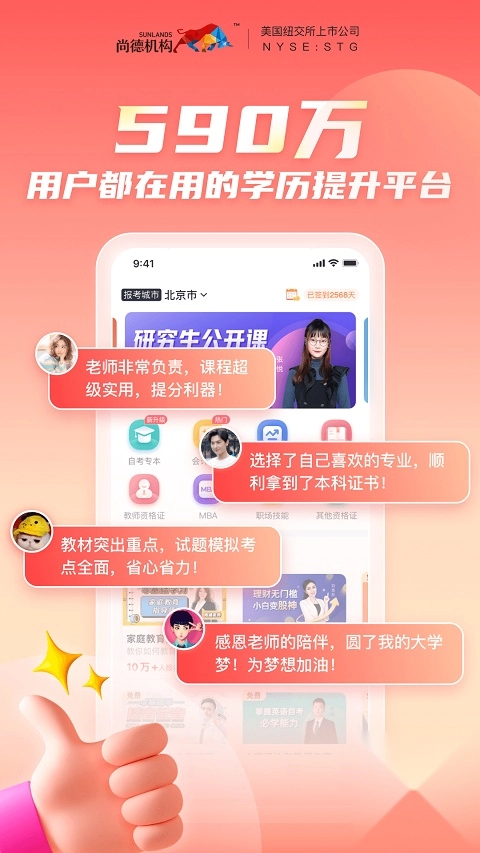 尚德机构是一款专注于职业教育领域的线上学习平台,覆盖了丰富多样的行业课程。无论你是想提升专业技能还是拓展职业方向,这里都能为你提供充足的学习资源和灵活的学习方式。平台采用轻松有趣的教学形式,帮助用户高效掌握知识要点。除了直播授课和公开课,你还可以随时与老师在线互动,及时解决学习中遇到的问题;同时,平台上还有许多志同道合的学习者,大家可以一起交流经验、互相鼓励,共同成长进步。