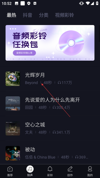 2、进入铃声选择界面后,点击【目标铃声】,展开铃声操作选项。