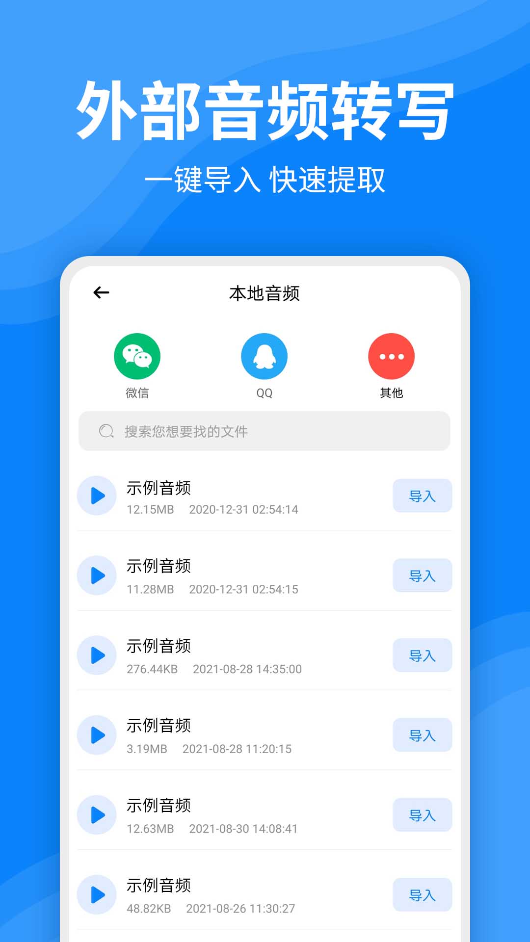2.在App首页,点击“导入外部音频”选项