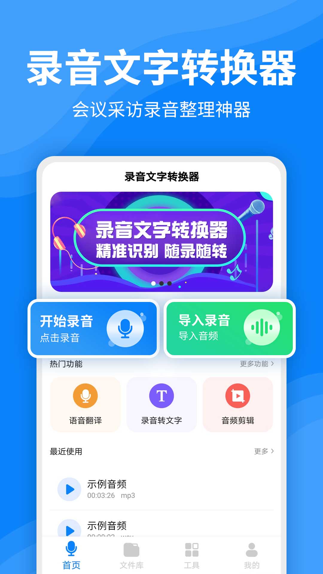 1. 在本平台安装录音文字转换器App,完成安装后打开并进入应用界面。