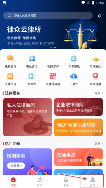 2进入律众云主界面后,找到底部的【我的】选项并点击,就能进入与个人相关的操作页面。