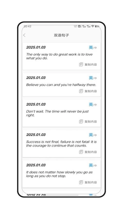 用户能够阅读每日在线推送的双语语句,从而积累更多经典语句。