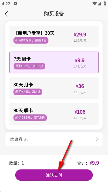 4、选择好套餐后点确认支付即可。