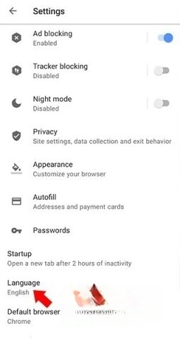 3、在设置界面中找到下方的Language选项;