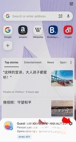 1、先安装好中文版的Opera浏览器,打开浏览器后,点击界面右下角的个人头像图标。