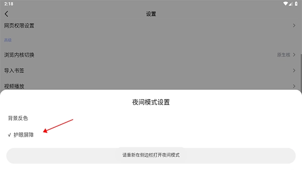 4、在背景反色功能弹出的选项中,点击护眼屏障,即可成功设置护眼模式了;