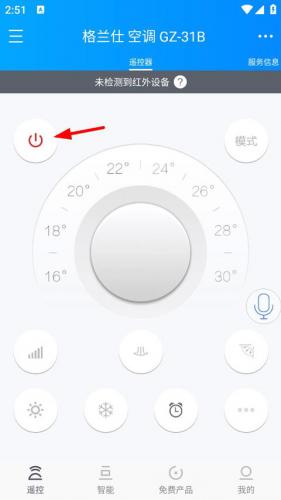 5、拿起空调遥控器,按下红色按钮就能检测到红外设备并启动空调。