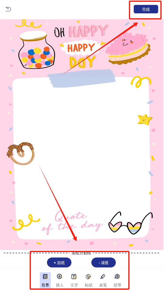 3通过底部工具栏里的各类书写与装饰工具进行操作,待编辑工作全部结束后,点击页面右上角的对应按钮来保存最终完成的作品。
