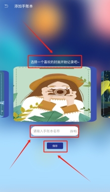 2、从系统推荐的多款精美封面图里挑选心仪的样式,输入手账名称后点击确认完成保存。