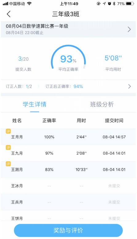 2查看班级的作业完成数据,就能了解班级的学习状态。
