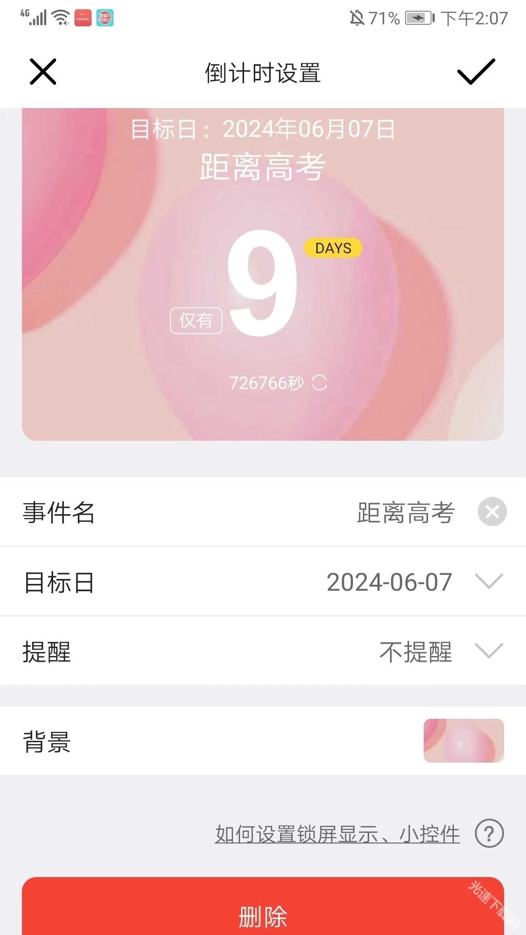 2. 若App未在后台运行,仍能显示锁屏倒计时,既省电又省内存。