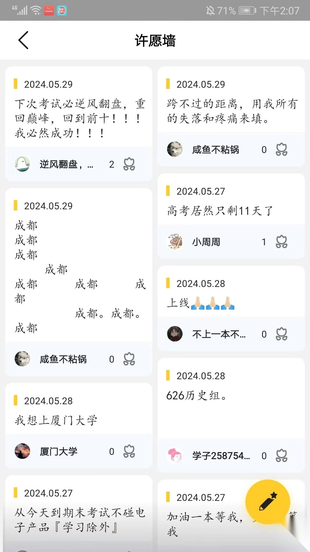 在这里,你既可以发帖和来自五湖四海的学生交流分享,也能许下心愿,释放内心的压力。