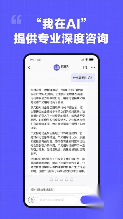我在AI免费版是一款相当出色的人工智能服务软件。它的操作方式十分简易,哪怕是老人或小孩,也能借助对话轻松获取所需的服务内容。用户可以通过这款软件解决生活与工作中碰到的各类问题,提高办事效率,从而享受便捷又有趣的生活模式。