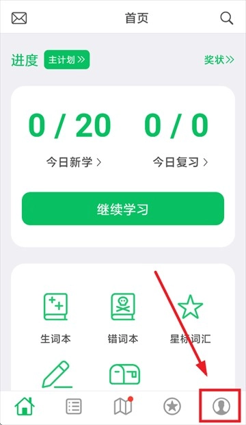 1、安装词力派并打开软件,进入后、点击右下角的我的。