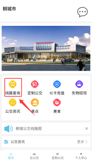 1打开桐城掌上公交应用完成登录后,在首页的功能区域找到并点击“线路查询”入口,即可跳转至对应的检索界面。