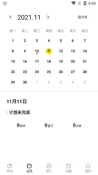 进入日历界面后,能看到前一天的日期显示为红色,表明当天尚未完成打卡。