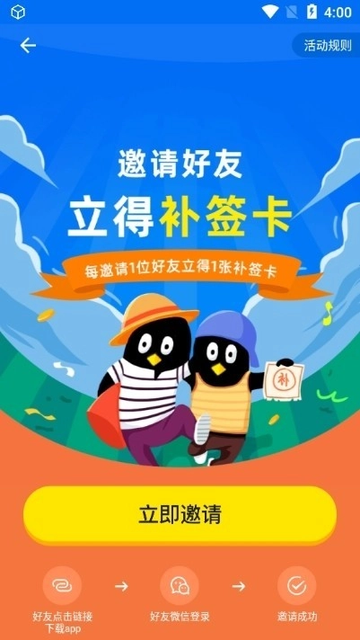 4、目前的活动是邀请好友获得补签卡。