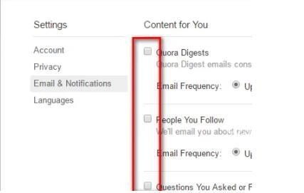 4、接着在弹出的Settings目录里,找到并选中Email&Notification选项。