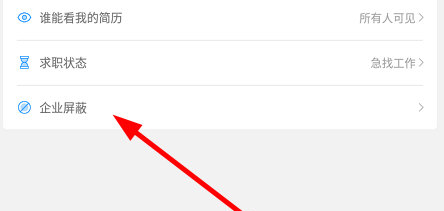 1、同样是在【简历】界面,我们点击【企业屏蔽】。