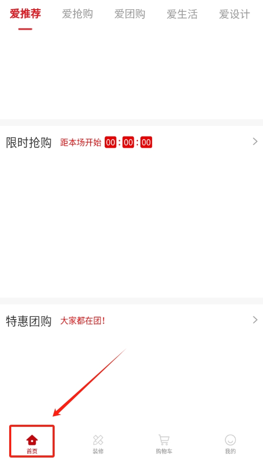 3完成登录操作后返回主页,可浏览到“限时抢购”与“特惠团购”相关活动板块,用户可根据自身需求选择参与。