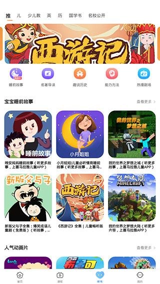 2、切换到【课程】页面之后,我们还能看到许多不同的课程分类,如启蒙教育、科学探索、国学经典等。