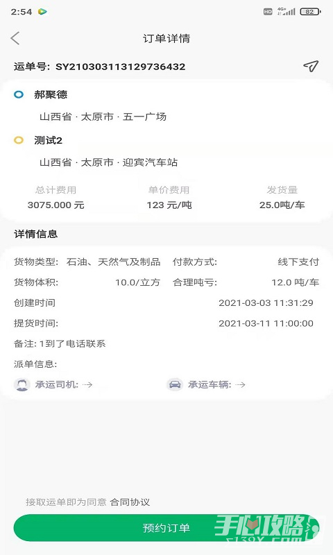 4、支持自主在线预约心仪的货源订单,可主动向任意货主发起运货预约
