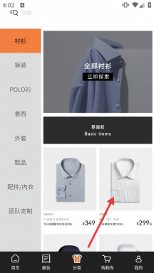 2进入分类页面后,找到并点击“衬衫”分类,然后挑选自己喜欢的商品进入详情页。