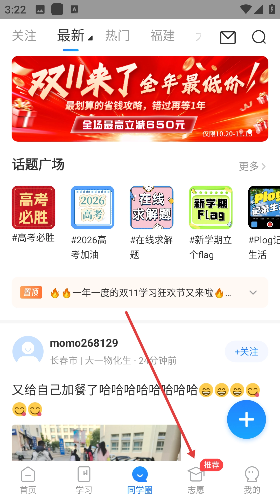 1、点击底部【志愿】,进入志愿页面。