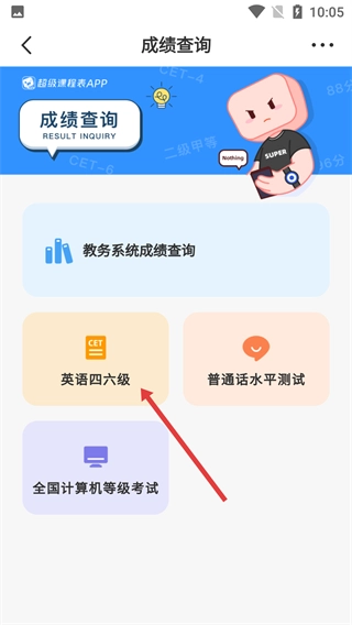 2、在成绩查询界面点击【英语四六级】选项,进入全国大学英语四、六级考试成绩查询页面。