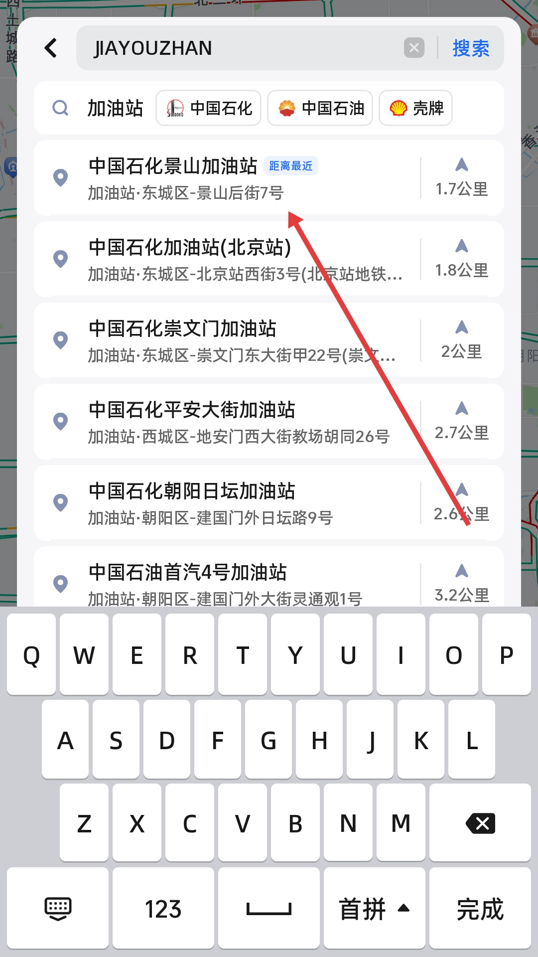 2、输入要去往的地点,选择对应的地址。