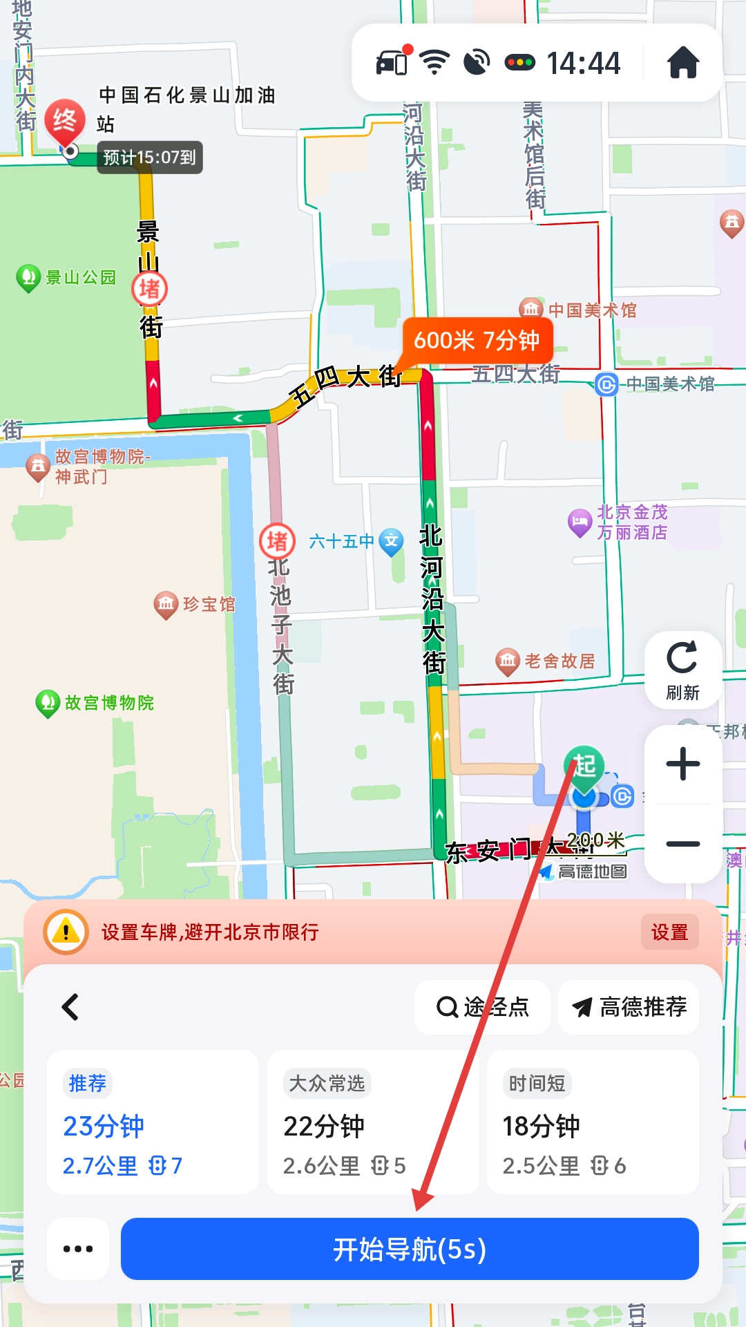 4、在导航路线页面点击【开始导航】,启动导航。