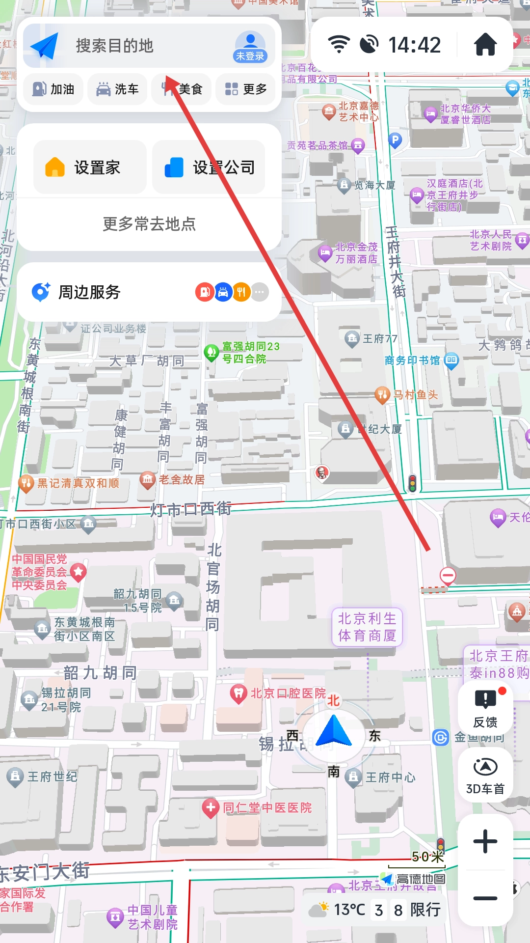 1、点击左上角搜索框,搜索目的地。