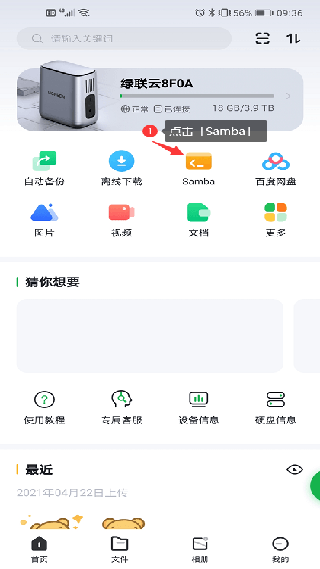 1打开绿联云应用后,在主界面的网络服务或文件共享板块中找到标识清晰的Samba功能选项即可。