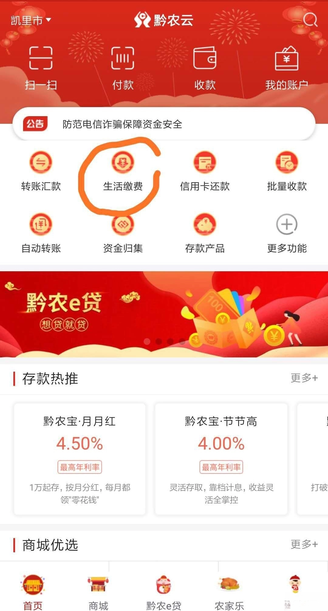 第一步:点击“生活缴费”