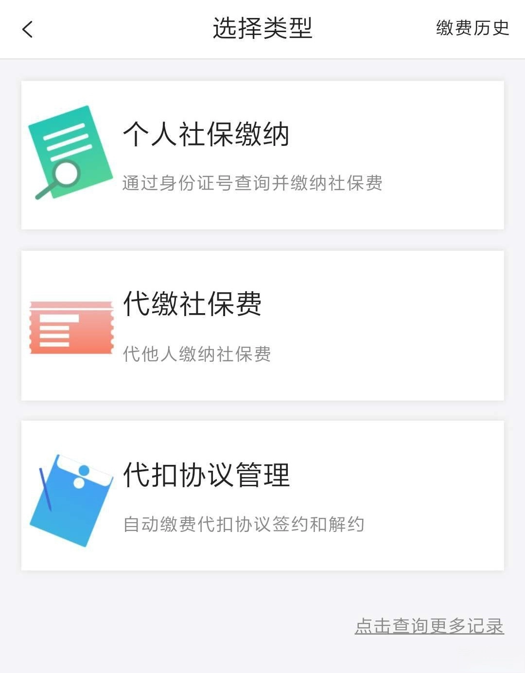 第三步:若是给本人缴费,选择“个人社保缴纳”;若是给他人缴费,选择“代缴社保费”