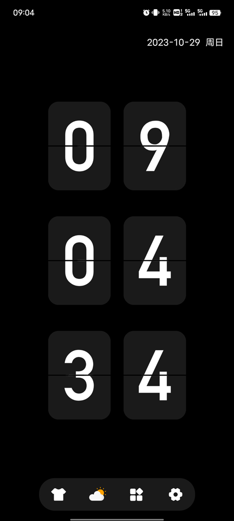 1、打开翻页时钟Fliqlo安卓版应用,进入后的界面如图所示;