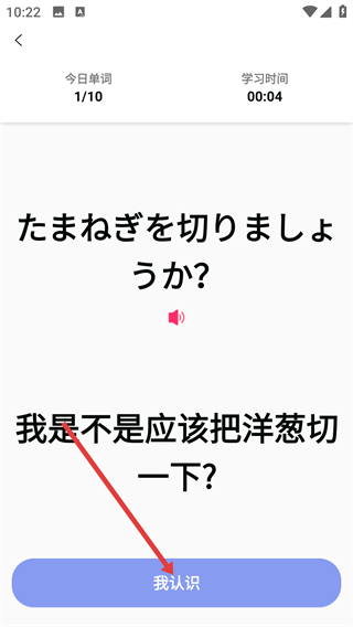 4、查看翻译内容并确认自己已经掌握后,点击【我认识】按钮,这样就能完成该内容的学习并继续进行后续任务。