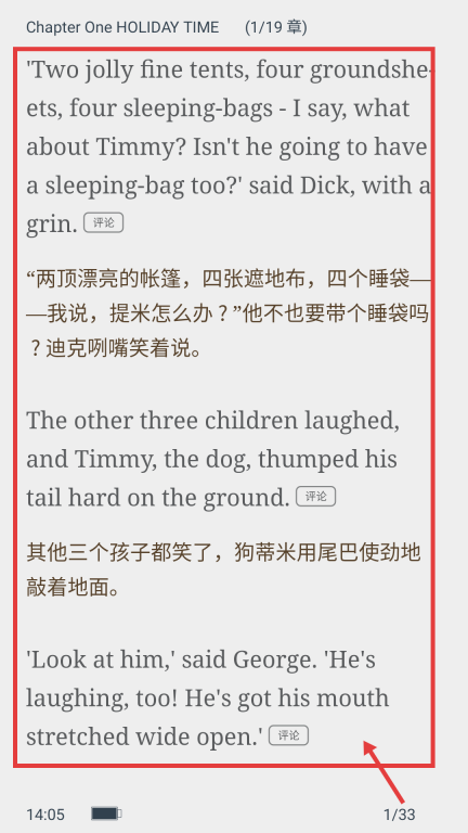 4在阅读页面,可通过【中英对照】模式浏览书籍章节,助力阅读与学习。