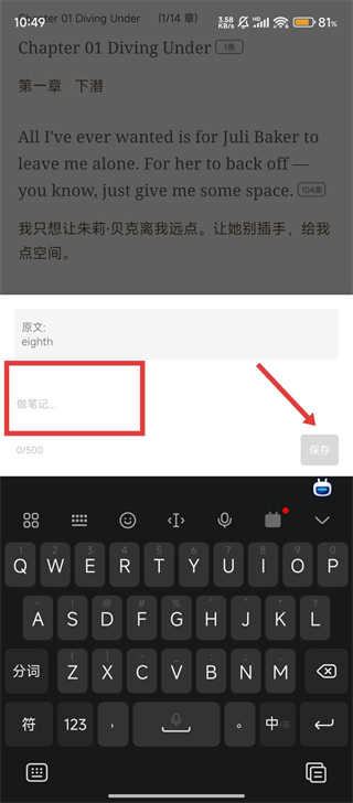 2在电子书的阅读界面,当用户选定某个单词后,可在页面上方或侧边的功能栏中找到用于添加批注的按钮,点击该按钮即可为选中的单词创建笔记。