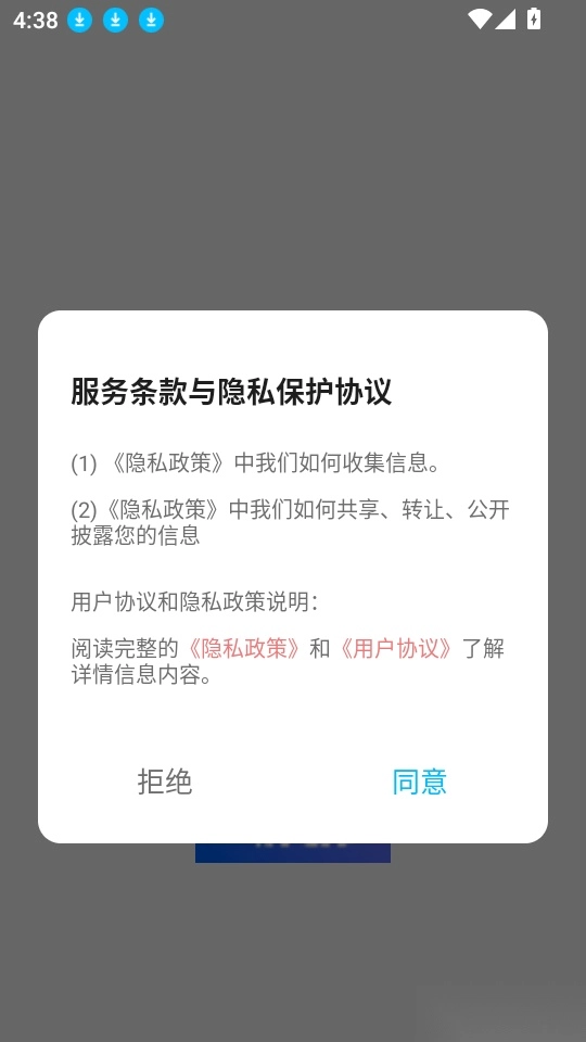 1、首先打开应用点击“同意”按钮来进入中。