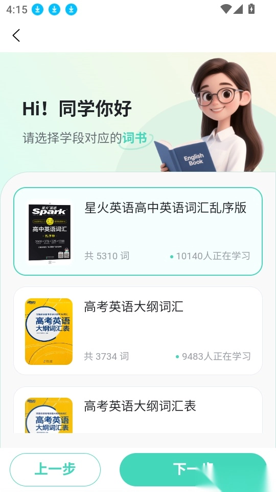 4、对需要背诵的英语词汇可以进行选择,选择词汇书籍后来点击“下一步”按钮。