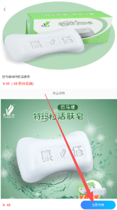 2在“积分兑换商品”板块里,挑选一件像“巴马缘特玛粒活肤皂”这样的具体物品。