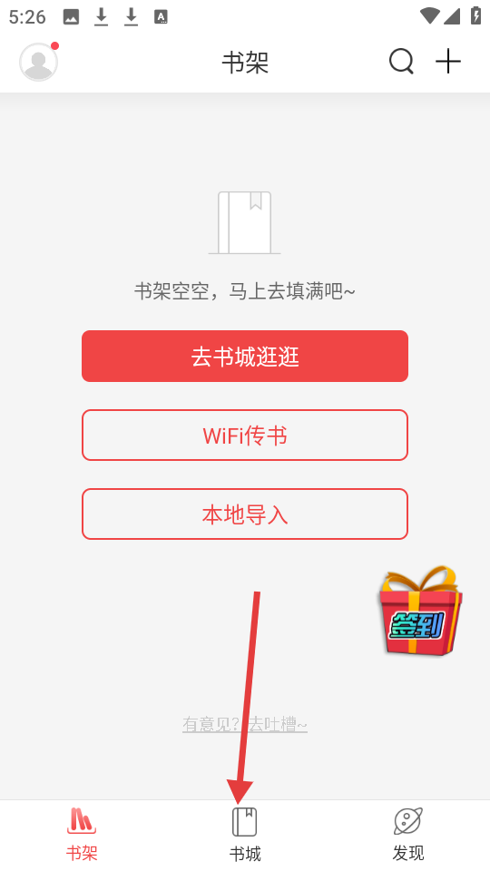 2、在书架页面点击【书城】,进入书城页面。